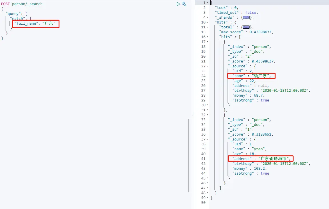 查询 full_name 的值,会返回 name 和 address 相关的值的对象。