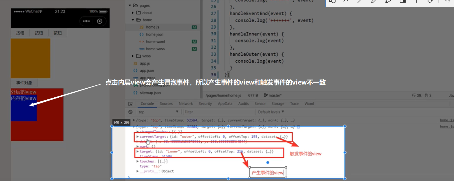 currentTarget(触发事件的view)&&target(产生事件的view)