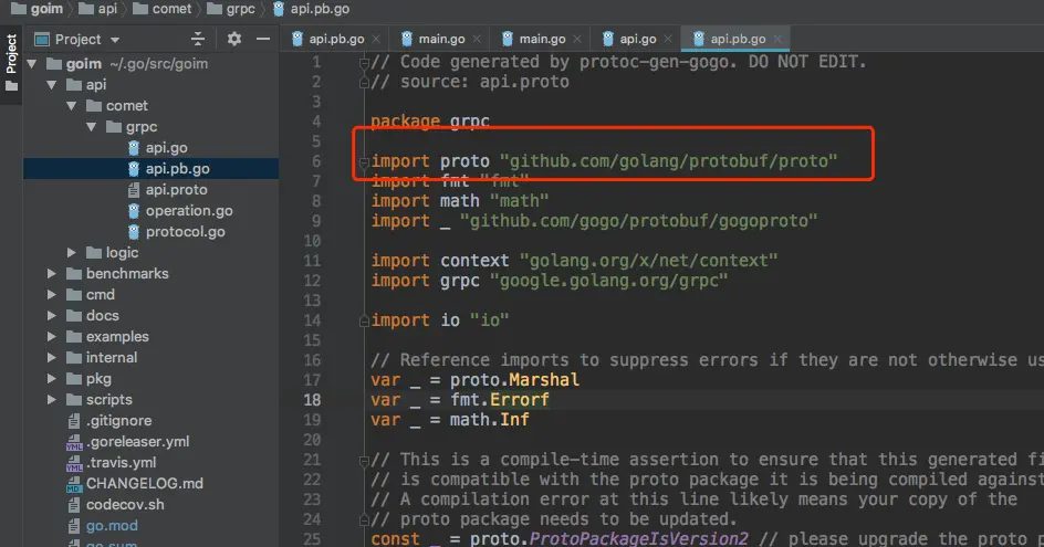 go modules 发布之后,就完全统一了包引用的地址,如上面我们说的创建 go.mod 文件后,初始化内容的第一行就是我们说的项目依赖路径,通常来说该地址就是项目的仓库地址,所有需要引用项目包的地址都填写这个地址,无论是内部之间引用还是外部引用,举个例子,goim 的内部包引用: