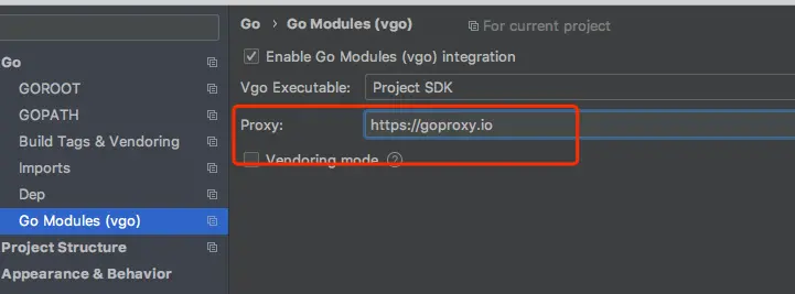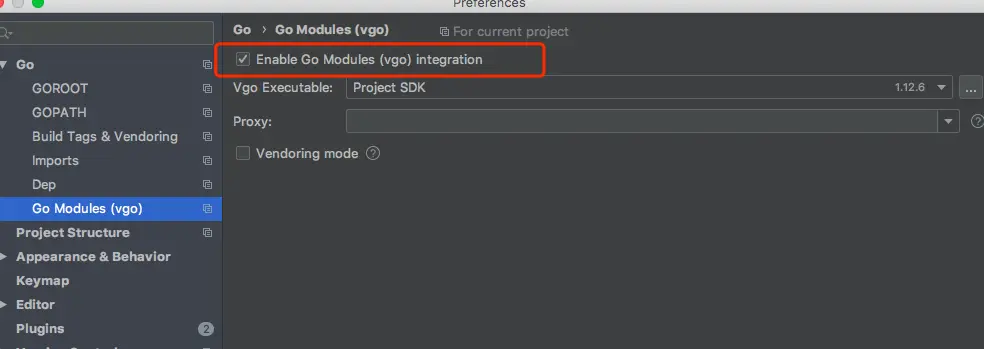但也有可能会出现依赖包地址正确但会报红的情况,这时极有可能是你在 Goland 编辑器中没有将项目设置为 go modules 项目,具体设置如下: