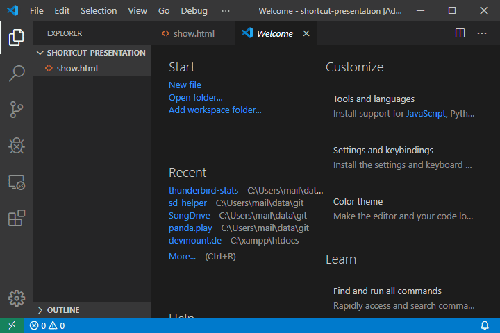 这里有一份VS Code中的快捷键的完整列表可以下载: Windows备忘单[PDF] 和 MacOS备忘单[PDF]。