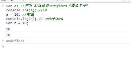 在一段JS脚本执行之前,会先解析代码(所以说JS是解释执行的脚本语言),解析的时候会先创建一个全局的执行上下文环境,先把代码中即将执行的变量、函数声明都拿出来。变量先赋值为undefined,函数则先声明好可使用,这一步做完了,然后开始正式执行程序。