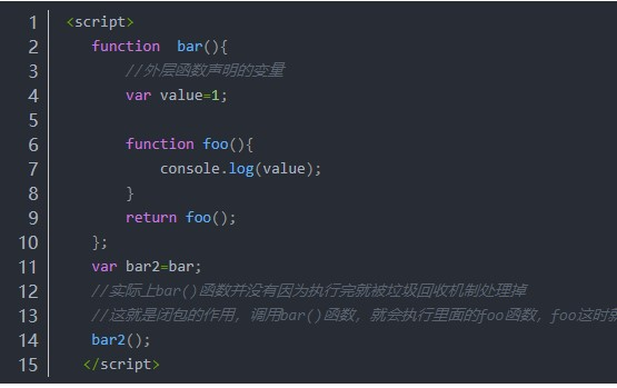 4.2、闭包的作用:访问函数内部变量、保持函数在环境中一直存在,不会被垃圾回收机制处理 foo()包含bar()内部作用域的闭包,使得该作用域能够一直存活,不会被垃圾回收机制处理掉,这就是闭包的作用,以供foo()在任何时间进行引用。