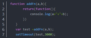 4.5、闭包在实际中的应用 一般setTimeout的第一个参数是个函数,但是不能传值。如果想传值进去,可以调用一个函数返回一个内部函数的调用,将内部函数的调用传给setTimeout。内部函数执行所需的参数,外部函数传给他,在setTimeout函数中也可以访问到外部函数。