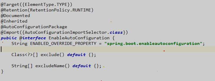 进去之后我们看到有一个注解@EnableAutoConfiguration,这个就是完成自动配置的主角。