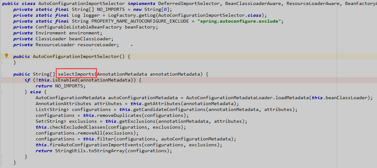 而这个注解也是一个派生注解,其中的关键功能由@Import提供,其导入的AutoConfigurationImportSelector的selectImports()方法通过SpringFactoriesLoader.loadFactoryNames()扫描所有具有META-INF/spring.factories的jar包。