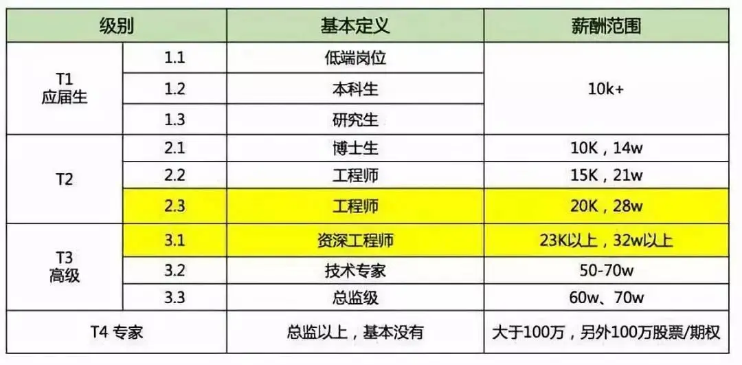抛开其他因素,先只讨论薪水:业界标杆 BAT 的薪水如下: