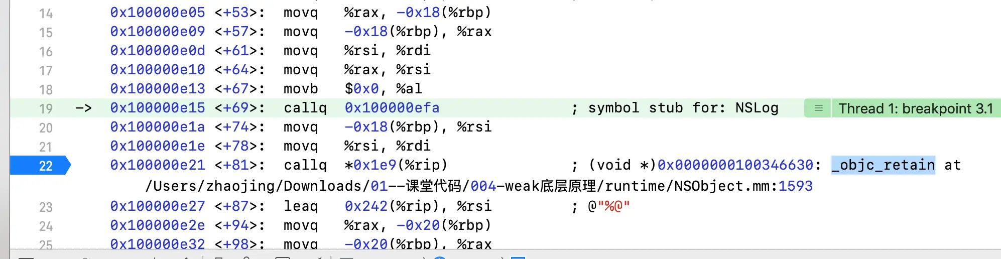 我们可以再做一个实验,在代码前加上一个NSString临时变量