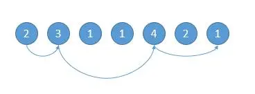 从左到右跳的话,2 -> 3 -> 4 -> 1。