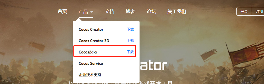 3、去cocos官网上下载一个cocos2D-x的引擎,(www.cocos.com/creator/),选… 下载, 本人下载的是3.10版本,因为我在下载了最新的Cocos2d引擎解压后,在VsStudio2013中编译的时候编译不过,可能是不兼容,所以在同事建议下又降回3.10
