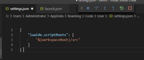 参数配置阶段:(主要是为了实现,在VsCode中调试,点击调试的时候,可以直接启动Lua的虚拟器,同时可以实现断点功能)。