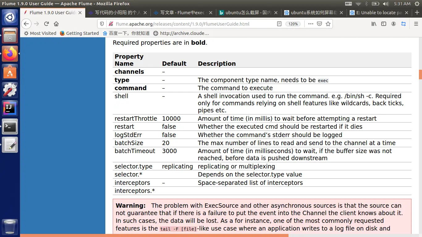 Flume中exec source不能正确监听文件的问题 写代码的小阳阳 2020-01-17 602 阅读1分钟 报错[INFO-org.apache.flume.source.ExecSource$ExecRunnable.run(ExecSource.java:376)]Command[tail -f /file/path] exited with 127 解决办法:检查exec source配置文件中是否配置 agent.sources.r1.shell = /bin/bash -C 选项,如果配置的话,智能监听从命令行输入文件的内容,不能使用编辑器打开文件输入内容