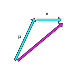 假设我们向量 p 表示小球当前位置,向量 v 表示当前速度,那么下一帧的小球的位置为下图中的粉色向量。不用再分别计算 x 轴 和 y 轴的分量。