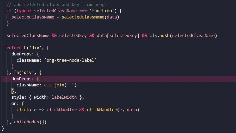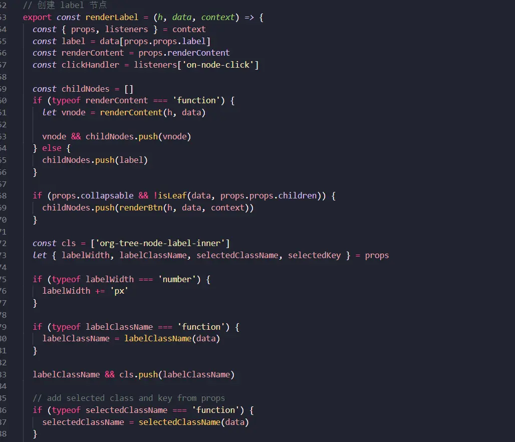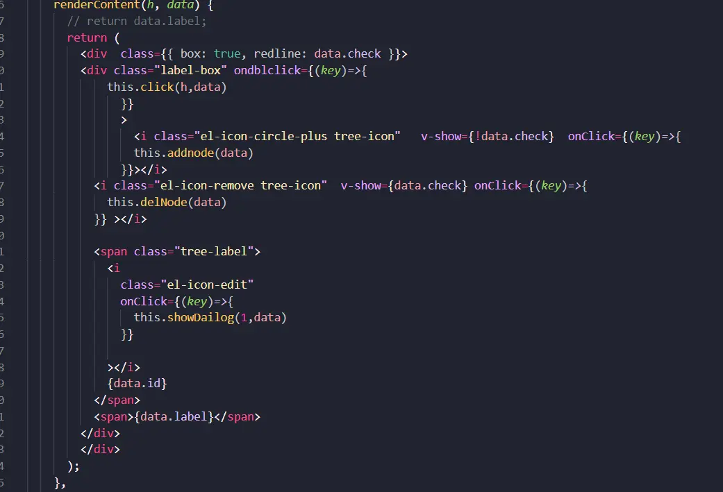 我们可以很清楚的看到label节点就是在这个函数里动态创建的,如果我们要自定义节点的样式和结构,那就要从这里入手,因为组件是封装的函数进行创建节点的,那我们如果要想在组件上扩展增删改查功能,添加事件就不太好处理,所以我决定不在这个js里进行修改。不懂就问,百度一下。然后我就搜到一个大佬写的文章。文章里说 发现组件提供的API里面有自定义渲染方式的prop:renderContent 我们可以传一个jsx 进行渲染。