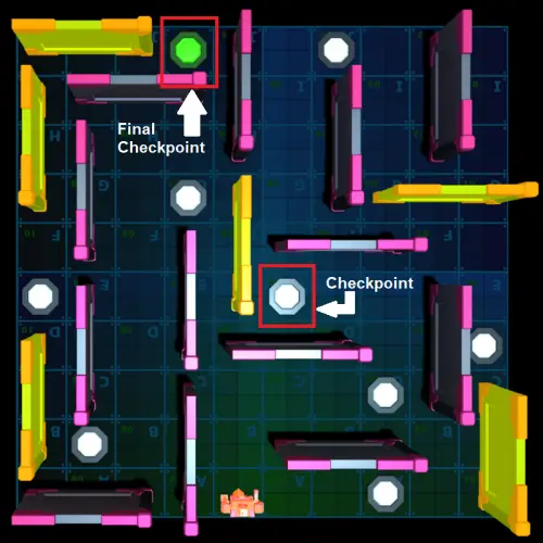 小挑战:尝试达到迷宫终点的绿色检查点。如果遇到困难,我在下面提供了解决方法,这是多个解决方法之一。 解决方法: