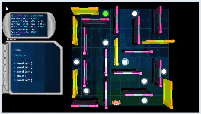 我们可以使用WASD按键输入方向命令。输入射击模式时,使用F键。最后,按下回车键执行命令。