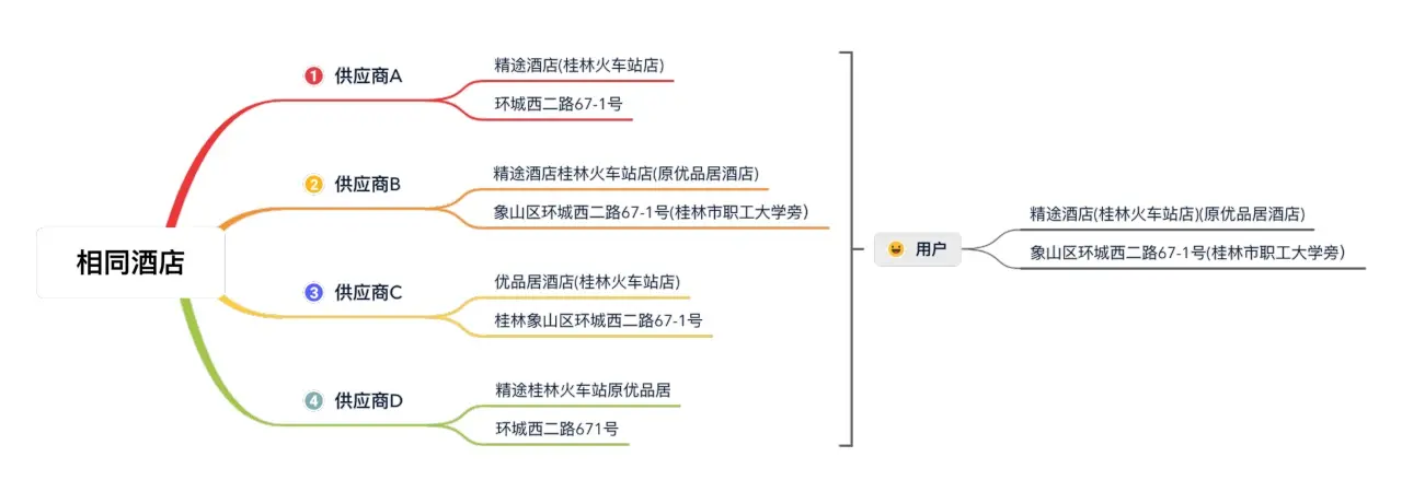 上文说过,不同供应商对于同一酒店的描述可能存在偏差。如果聚合出现错误,就会导致用户在 App 中看到的酒店不是实际想要预订的: