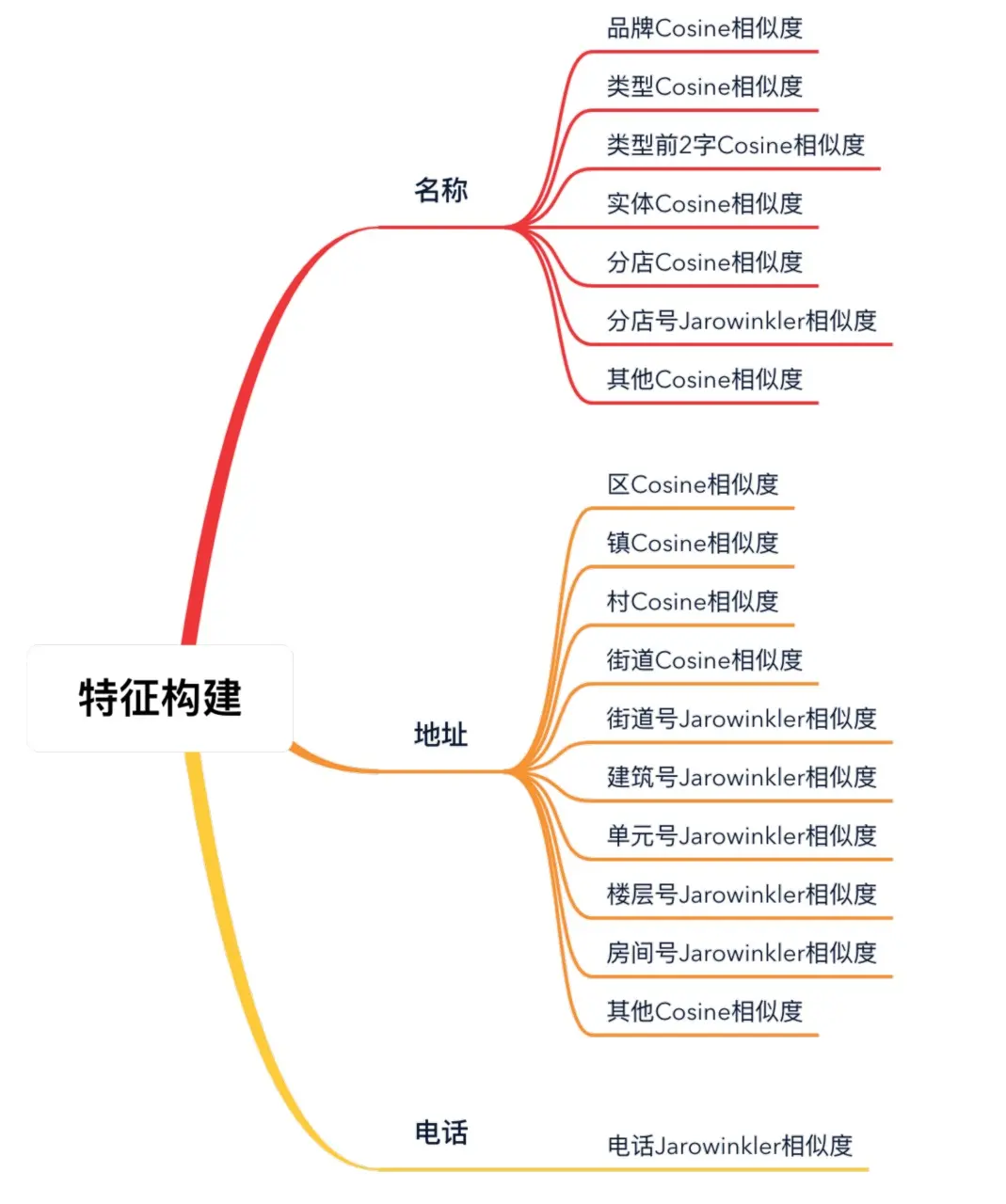 特征构建的过程其实也是模拟人思维的一个过程,目的是针对分词的结构化数据进行两两比对,将比对结果数字化以构造特征向量,为机器学习做准备。