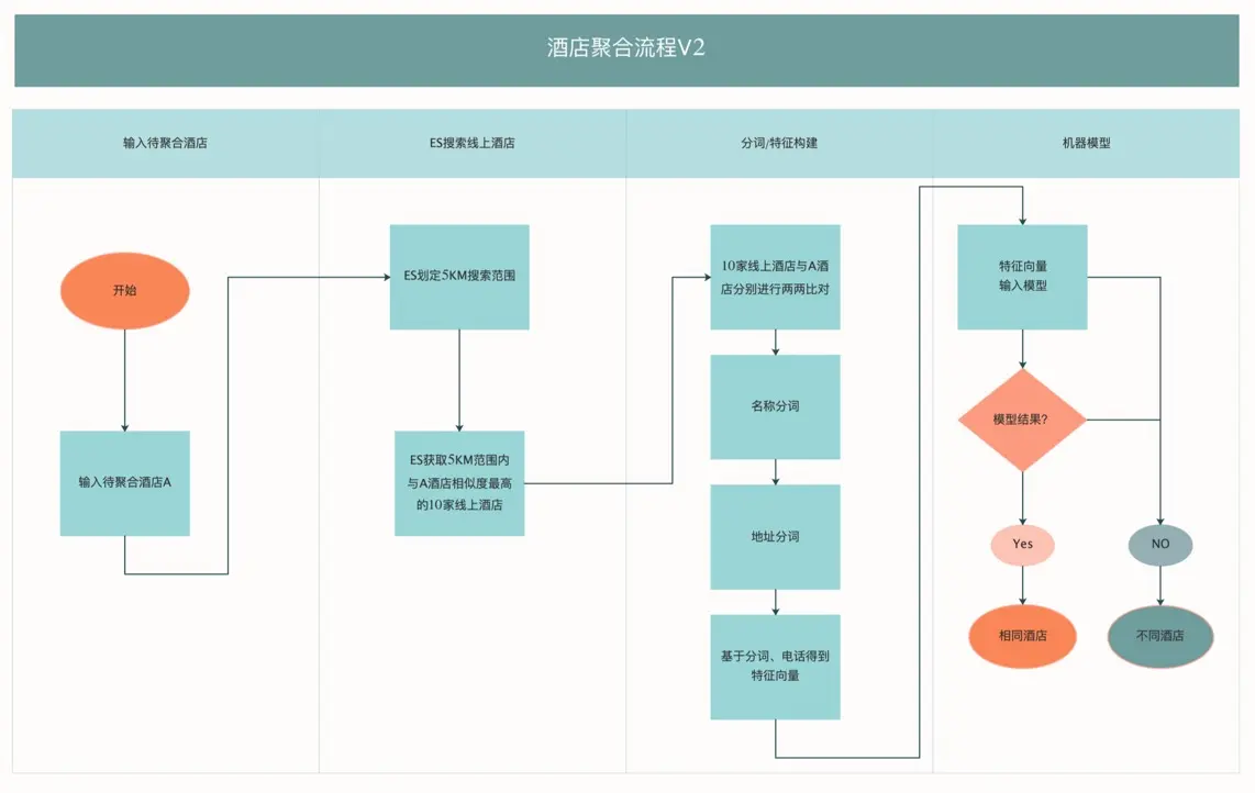 整体方案介绍完后,我们将基于机器学习的酒店聚合流程大致示意为下图:
