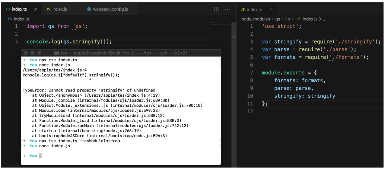 但是当将其导出而import方为js文件时由于ts不会将js进行编译,所以对于js文件来说其值为undefined。