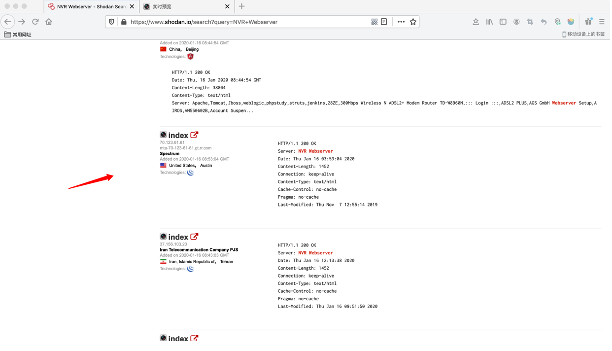 此时我们便发现成功的链接上了。看完之后我还是默默的退了出来,并获得最大的提醒就是买完设备一定要改默认密码啊,因为就像这种东西有的路由器也会链接上,到时候黑客注入病毒可就坏咯。其中shadon还有很多高级的过滤技巧就等着大家继续研究了😏