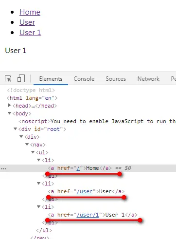 <Link to="/user/1">User 1</Link>