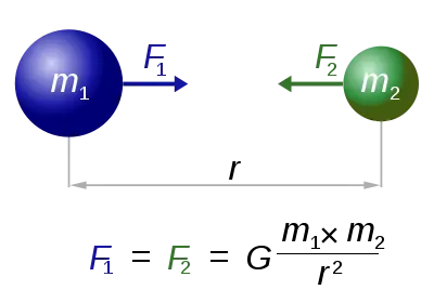 任意两个质点有通过连心线方向上的力相互吸引。该引力大小与它们质量的乘积成正比与它们距离的平方成反比,与两物体的化学组成和其间介质种类无关。