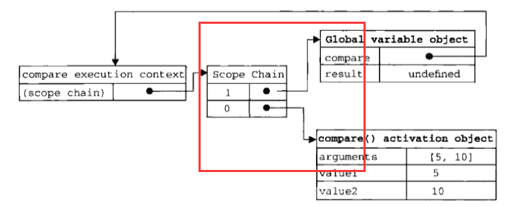 对于这部分代码来说,他的作用域链分别为: