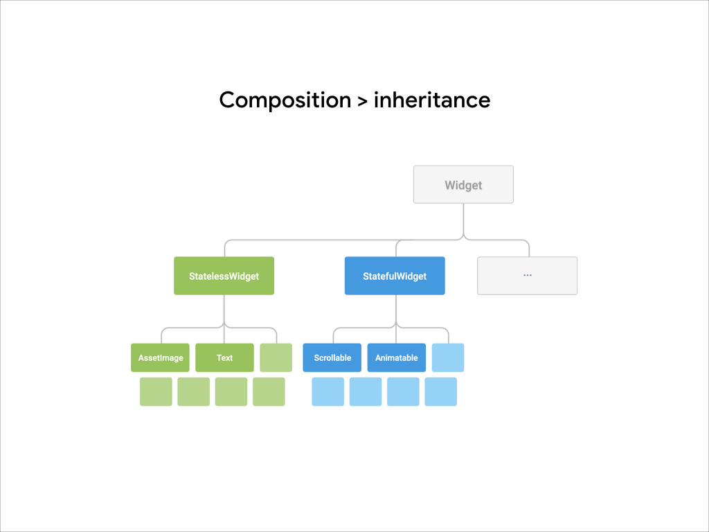 Flutter 从 React 中汲取了很多思想,"组合优于继承" 是其中一个。