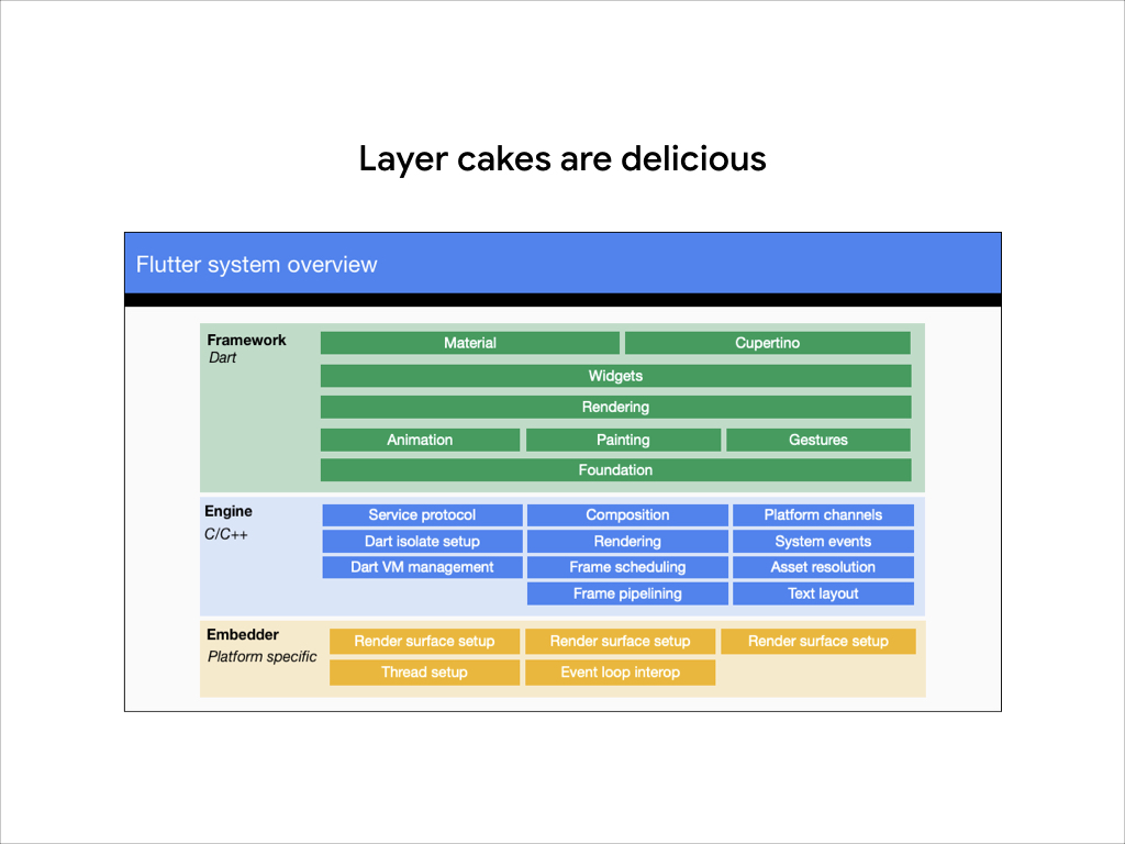其中 "一切都是微件" 又有两个子概念:① 组合优于继承、② 多层蛋糕很好吃。