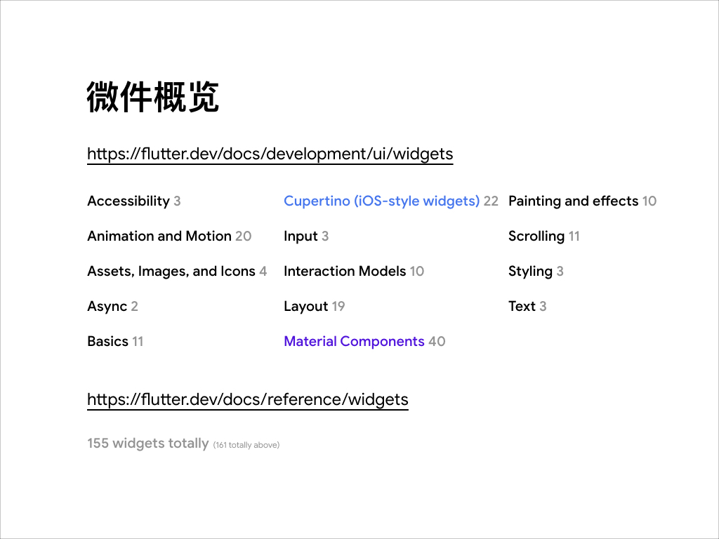 微件是 Flutter 开发的根本,对全部微件有一个宏观的认知是重要的。