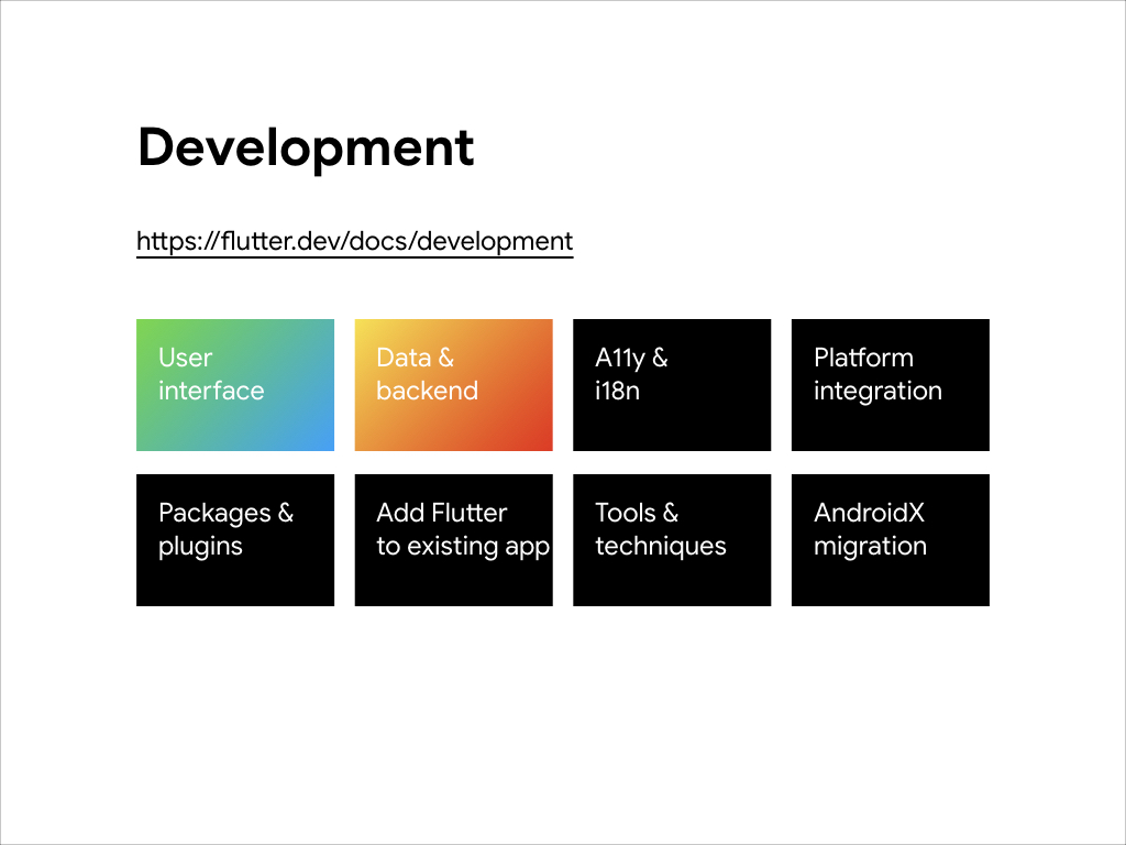 Development 下包含 8 个子菜单项,主要关注 UI 与 Data & backend 两个子菜单项即可。