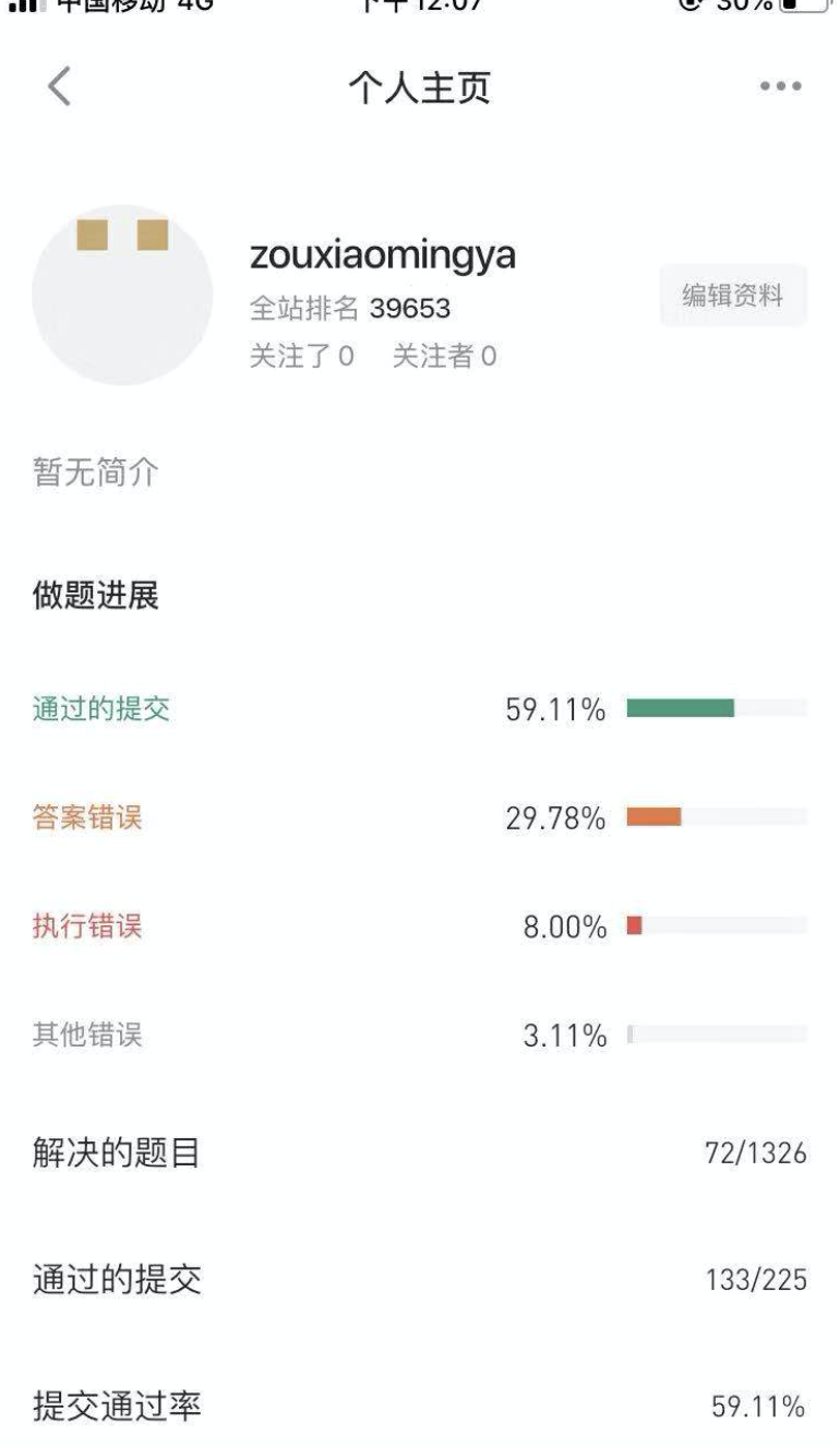 刷了:72 题。 完成度:60%