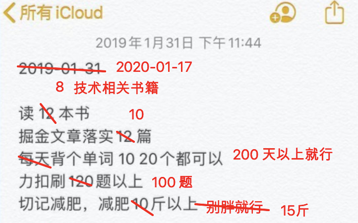 看记录,感觉当时写的也是蛮随意。又是看书又是做题,背单词的同时还要减肥,现在这样看感觉当时的自己对未来的自己要求还蛮多,果然当时自己是个狠人。不过好在经过了 1 年的努力,成功让我可以在 2020 年不用立 flag 了。没错,就是一个都没完成。