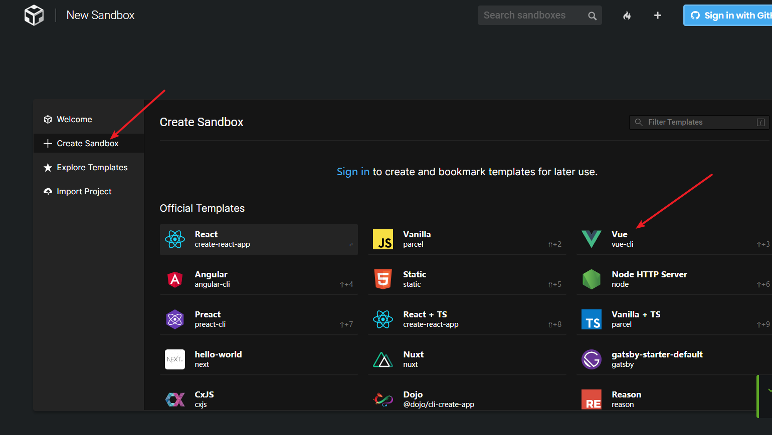 如何使用codesandbox.io写vue:(三图流)(无需登录)