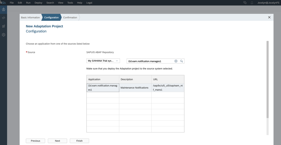 On-Premises系统确定之后,在该系统找到要增强的Fiori应用,通过输入该应用的技术ID来定位。点击Next完成Fiori Adaptation Project的创建向导,这里我们给该project取名s4demo.