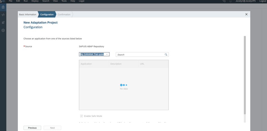 下一步需要选择增强哪一个SAP系统的哪一个Fiori应用。如果待增强的Fiori应用位于On-Premises系统,需要预先配置SAP Cloud Connector和SAP云平台上的Destination,否则到了这一步,在SAP UI5 ABAP Repository的下拉列表里将无法看到该系统。