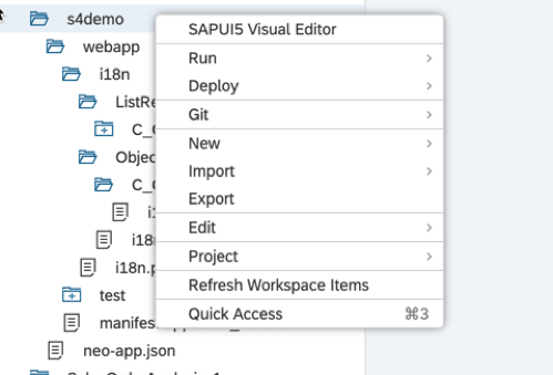 在WebIDE里邮件该project,选择SAPUI5 Visual Editor,打开这个所见即所得的视图编辑器,