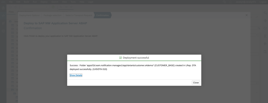 成功部署的提示信息:Folder XXXX ( CUSTOMER_BASE) created in LRep.