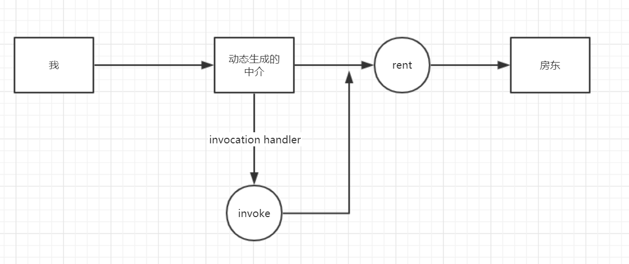 说简单一点就是当代理类(中介)执行 rent 方法时,会先执行中介关联的 invocation handler 的invoke方法,然后再执行 rent 方法.