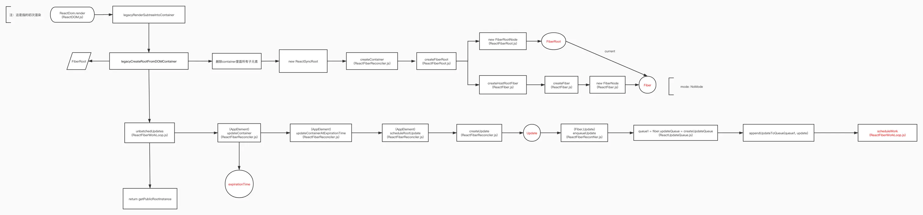 FiberRoot 是整个应用的入口对象,它是一个 javascript 对象,内部记录了很多和应用更新相关的全局信息,比如要挂载的 container。