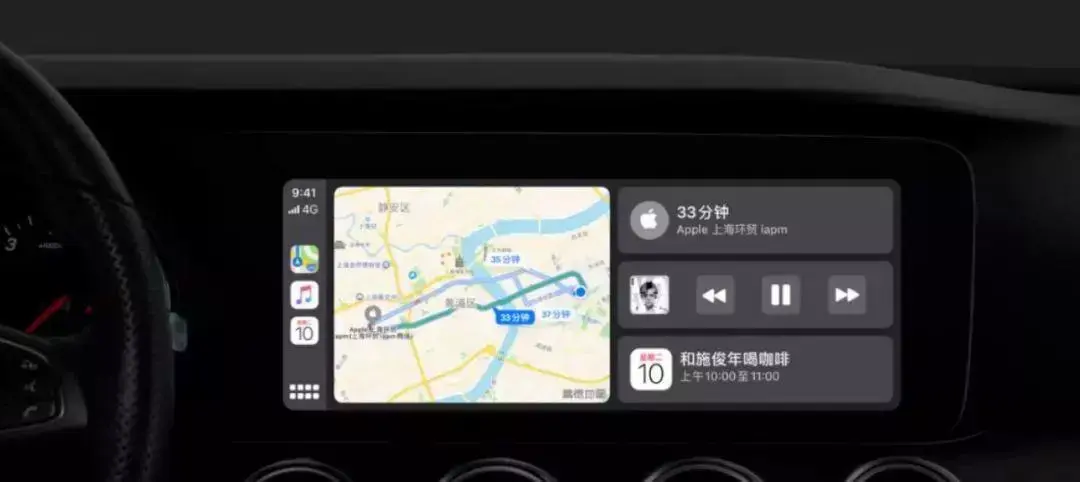 iOS13的CarPlay也支持深色模式,并且可以把多项功能显示在同一屏幕,更方便查看和操作,支持更多机型。