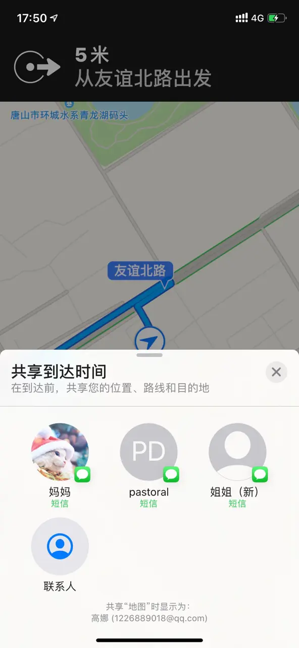 如果对方是iOS13的系统,你可以将自己的实时位置和到达时间分享给他。如果对方不是iPhone用户。也可以通过短信的形式分享自己的到达时间