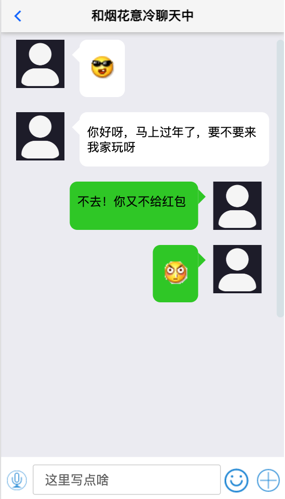 下边我们再来看一下聊天中经常使用到的发送表情和图片功能是如何实现的吧。其实表情也是小图片,只是和聊天中图片不同的是,表情图片比较小,可以缓存在客户端,或者直接存放到客户端代码的代码文件中(不过现在微信聊天中有的表情包都是通过网络传输的)。下边是一个聊天中返回的图标文本数据: