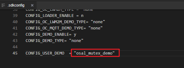 那么,如何配置 CONFIGUSERDEMO 宏定义呢?在工程根目录下的.sdkconfig文件中的末尾即可配置: