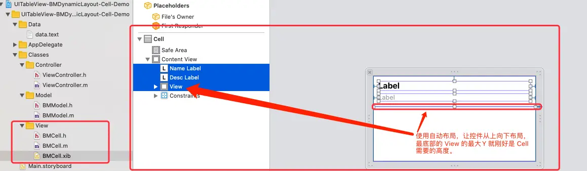 - 在正常显示的时候,Cell 里必须有一个 View 的最大 Y 刚好是 Cell 需要的高度。