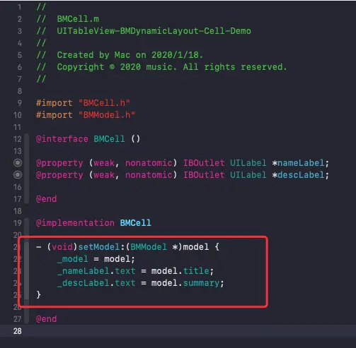 其中使用的模型就是第一步创建的模型 BMModel。
