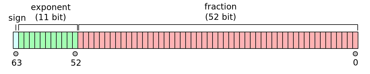 在 JavaScript 中不论小数还是整数只有一种数据类型表示,这就是 Number 类型,其遵循 IEEE 754 标准,使用双精度浮点数(double)64 位(8 字节)来存储一个浮点数(所以在 JS 中 1 === 1.0)。其中能够真正决定数字精度的是尾部,即