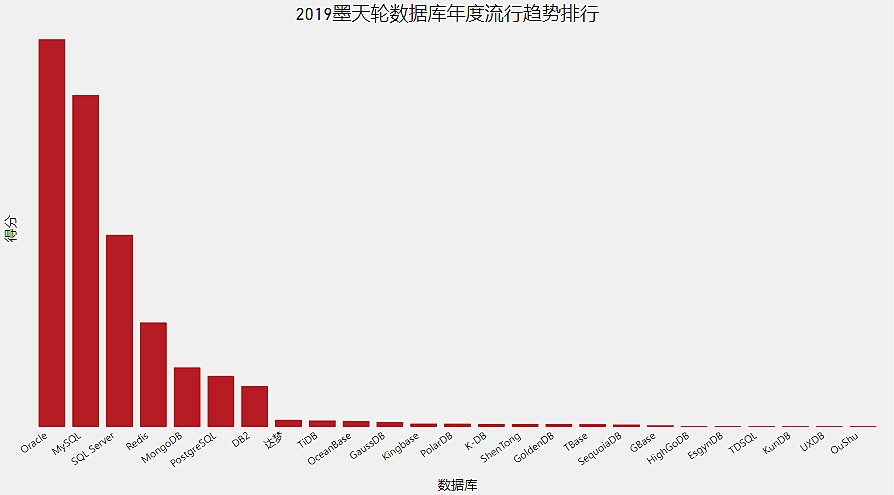 2019墨天轮新增数据库排行,针对53种国内较流行的数据库,通过搜索引擎、指数趋势、招聘、书籍等20多个渠道,根据数据获取渠道、时间、中英文搜索等维度确立不同权重计算出当月数据库流行趋势排行。