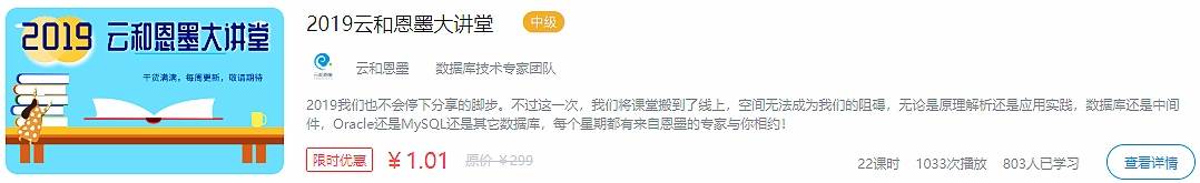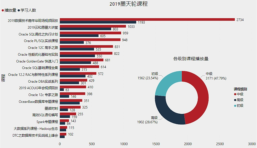 2019年墨天轮共上线了18个课程,涵盖初、中、高各个领域。